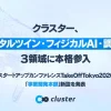 「cluster」は、クリエイターが思い描く世界を具現化し、共有できるバーチャル空間構築プラットフォームです。ブラウザ・スマートフォン・VRに対応し、複数人が共同制作できる「ワールドクラフト機能」や、3Dアセットやアバター/アイテムの売買が可能な「ストア機能」など、表現したい世界観を構築するためのシステムが提供されています。ゲームやイベント空間のほか、製造・建築分野のデジタルツイン構築まで、多様なユースケースを支えています。