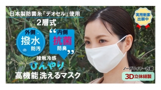 イデア、2層式 洗えるひんやり夏マスク新発売。外(撥水)+内(抗菌)&接触冷感生地。ノーズワイヤー内蔵、息苦しさ軽減の立体縫製でしっかりフィット